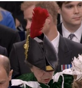Στην τελευταία του δημοσίευση, που κυκλοφόρησε την Πέμπτη, ο Robert γράφει: «Στην ίδια τη στέψη, ο πρίγκιπας Χάρι καθόταν στην τρίτη σειρά του βασιλικού τμήματος, ακριβώς πίσω από την πριγκίπισσα Άννα, η οποία φορούσε ένα εντυπωσιακό καπέλο με κόκκινα φτερά που δεν έβγαλε όταν κάθισε.