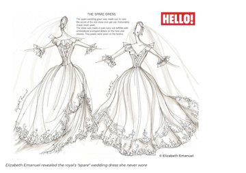 Αυτό που λίγοι γνωρίζουν είναι ότι υπήρχε και ένα σχέδιο για ένα εφεδρικό νυφικό και τα σκίτσα του έχουν αποκαλυφθεί και στο παρελθόν.