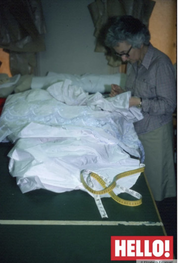 Η Elizabeth Emanuel ωστόσο, μοιράστηκε για πρώτη φορά φωτογραφία του “εφεδρικού” φορέματος με το περιοδικό Hello! Στο στιγμιότυπο, μια γυναίκα φαίνεται να εργάζεται πάνω στο σύνολο, καθώς είναι τοποθετημένο σε ένα τραπέζι.