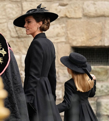 H σύζυγος του πρίγκιπα William και πλέον πριγκίπισσα της Ουαλίας, έδειχνε ιδιαίτερα κομψή, φορώντας ένα μαύρο coat dress, μαύρο καπέλο με βέλο και το pearl choker κολιέ που άνηκε στην πριγκίπισσα Diana.