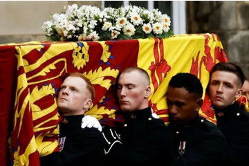 Ντυμένο κατά το βασιλικό πρότυπο της Σκωτίας, το φέρετρο πλαισιώθηκε από το Bearer Party από το Βασιλικό Σύνταγμα της Σκωτίας και συνοδευόταν από το The King’s Body Guard for Scotland (Royal Company of Archers). Τα παιδιά της Αυτής Μεγαλειότητας εντάχθηκαν στην Πομπή καθώς αυτό ανέβαινε το Βασιλικό Μίλι και η συγκίνηση ήταν διάχυτη.