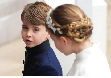 Ο νεαρός πρίγκιπας εθεάθη να χαζεύει και να δείχνει προς το μπροστινό μέρος του Αββαείου του Ουέστμινστερ, ενώ η Σαρλότ έσκυψε να δει τι έδειχνε. Τα αδέλφια φάνηκε επίσης να συνομιλούν λίγο, ακουμπώντας ο ένας στον άλλο κατά τη διάρκεια της δίωρης τελετής. Ο μικρός χασμουριόταν στην έναρξη της τελετής αλλά και μετά τη στέψη του βασιλιά.