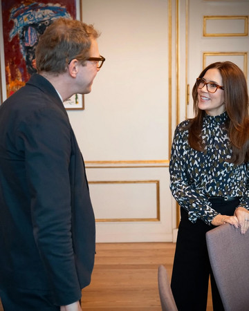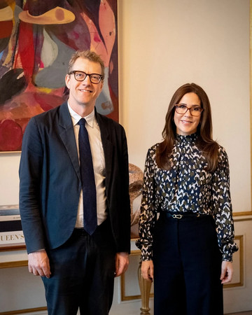 Η βασίλισσα Μαίρη έχει τον τρόπο να παίζει με all time classic κομμάτια απογειώνοντάς τα με λεπτομέρειες που κάνουν τη διαφορά. Έτσι στη συνάντηση που είχε με τον εκτελεστικό διευθυντή του The Queen Mary’s Centre, του κέντρου που ηγείται, στα Ανάκτορα Αμάλιενμποργκ, επέλεξε μεταξωτή, τρίχρωμη μπλούζα του αγαπημένου της Δανού σχεδιαστή Jesper Høvring.