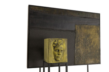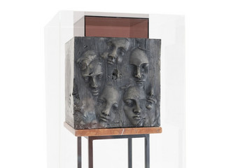 Ο Αντώνης Τζιαρρίδης, χρησιμοποιώντας κλασσικά ψυχρά πρόσωπα από διακοσμητικά άψυχα κεραμικά επιδιώκει να αποδώσει το επίκαιρο συναίσθημα του περιορισμού. Μέσω της συσσώρευσης διαφορετικών υλικών δημιουργεί μνημειακές «στήλες». Στη συγκεκριμένη περίπτωση τα πρόσωπα παραμένουν όμορφα εξωτερικά αλλά άψυχα και κενά.