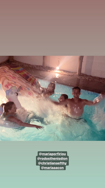 Το γλέντι διεξήχθη σε εξοχικό στα Περβόλια Λάρνακας, ενώ κράτησε μέχρι και τις πρωινές ώρες. Ποτό, χορός, βουτιές στη πισίνα και μουσική ήταν τα χαρακτηριστικά της βραδιάς, όπως μας έδειξαν και οι παρευρισκόμενοι μέσα από τα stories που δημοσίευσαν στο Instagram.