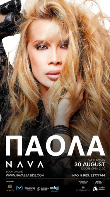 Με τη χαρακτηριστική φωνή, την αστείρευτη ενέργεια και τη σκηνική της παρουσία που καθηλώνει, η Πάολα υπόσχεται μια νύχτα γεμάτη ένταση, πάθος και… ατελείωτο τραγούδι μέχρι το ξημέρωμα. Το NAVA, ο απόλυτος καλοκαιρινός προορισμός διασκέδασης, υποδέχεται χιλιάδες επισκέπτες για μια φαντασμαγορική βραδιά, όπου το κλείσιμο της σεζόν γίνεται υπό τους ήχους των μεγαλύτερων επιτυχιών της αγαπημένης ερμηνεύτριας.
