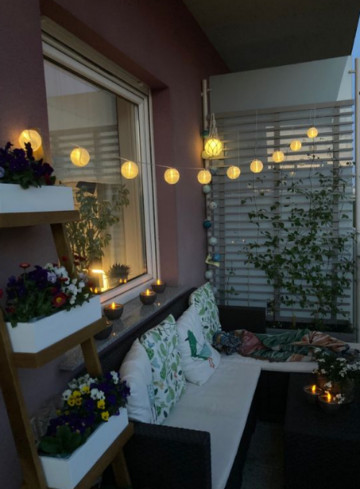 Για τα χαλαρά καλοκαιρινά βράδια που θέλεις να περάσεις στο μπαλκόνι σου, πρόσθεσε κρεμαστά φωτάκια με χαμηλό φως καθώς και φαναράκια για ρομαντική διάθεση.