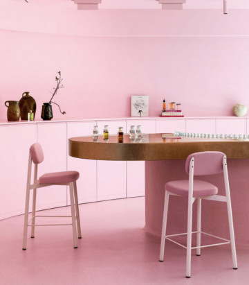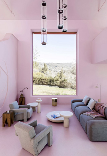 Όλα, απολύτως όλα, σε αυτό το σπίτι είναι ροζ! Γυαλισμένα πλακάκια από τερακότα, τοίχοι, δάπεδα terrazzo, ηχεία, διακόπτες, ηλεκτρικές πρίζες, τέντες…είναι όλα ροζ.