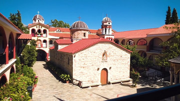 Στην Εύβοια, αλλά και στο πανελλήνιο, πασίγνωστη είναι η Ιερά Μονή του Οσίου Δαυίδ του Γέροντος, η οποία βρίσκεται στην καρδιά μιας πυκνόφυτης έκτασης στην περιοχή Ροβιές. Μια περιοχή που δυστυχώς έχει πληγή από τη μεγάλη φωτιά που ξέσπασε στο νησί το 2021. Καθώς εξερευνούσαμε τους ιερούς χώρους και θαυμάζαμε την όμορφη αρχιτεκτονική, αισθανθήκαμε μια βαθιά σύνδεση με την πλούσια πνευματική κληρονομιά της περιοχής. Ωστόσο, η συγκίνησή μας, κορυφώθηκε όταν περάσαμε σε μια από τις αίθουσες της μονής για να μας μιλήσει ο Ηγούμενος, ο οποίος μας φίλεψε αυθεντικό ελληνικό καφέ και μερικά γλυκά του κουταλιού και μας μίλησε για τον μακαριστό Άγιο Γέροντα Ιάκωβο, που έζησε στη μονή για περίπου σαράντα χρόνια και ήταν γνωστός για τα πνευματικά του χαρίσματα όπως της διοράσεως και προοράσεως. Μάθαμε για τη ζωή του, ακούσαμε τα θαύματα του και γνωρίσαμε το έργο του σε μια σύντομη, γεμάτη από συγκίνηση συζήτηση με τον Ηγούμενο.