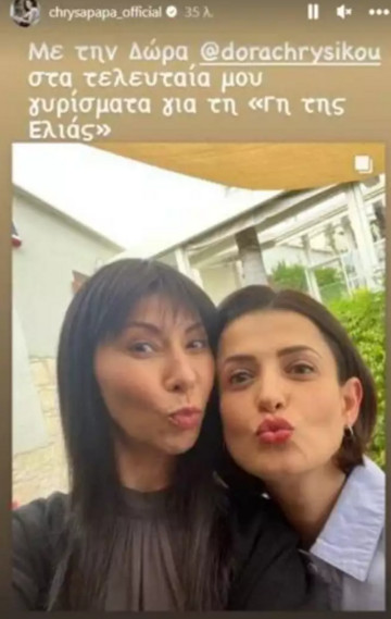 «Με την Δώρα στα τελευταία μου γυρίσματα για τη Γη της Ελιάς» έγραψε χαρακτηριστικά η Χρύσα Παππά ενημερώνοντας τους διαδικτυακούς της φίλους για το τέλος της Εύας από την «Γη της Ελιάς».