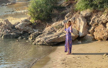Η Χριστιάνα Αριστοτέλους απεικονίζεται ντυμένη με ένα ανάλαφρο μάξι φόρεμα να παίζει με το νερό, να περπατά στην αμμουδιά και να κάνει νάζια στο φακό. Το τελικό concept; Θα το μάθουμε λίαν συντόμως!