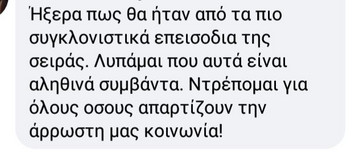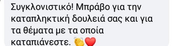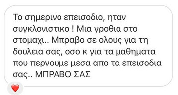 Λίγες ώρες μετά την προβολή του επεισοδίου, η σεναριογράφος μοιράστηκε μερικά από τα πολλά συγκινητικά μηνύματα που έλαβε από τον κόσμο. Πολλοί ήταν εκείνοι που έσπευσαν να δώσουν τα συγχαρητήρια τους και να τονίσουν πως τέτοιου είδους εκπομπές πρέπει να υπάρχουν στην Κυπριακή τηλεόραση.