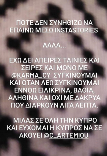 Σε δηλώσεις που παραχώρησε η Χριστιάνα Αρτεμίου στο Hello.cy, η ίδια δηλώνει συγκινημένη από την “αγκαλιά” που δέχεται το “Κάρμα” από τους πολίτες αυτού του τόπου.