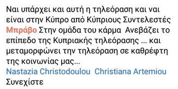 Από την άλλη , η σκηνοθέτης της εκπομπής, Ναστάζια Χριστοδούλου δηλώνει: