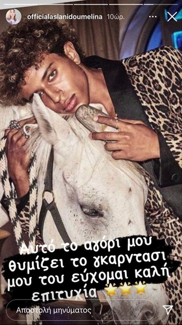 Την αποκάλυψη έκανε η ίδια με μια ανάρτηση σε story στον προσωπικό της λογαριασμό στο Instagram. όπου εναπόθεσε μια φωτογραφία του και από κάτω του ευχήθηκε “Καλή επιτυχία”.