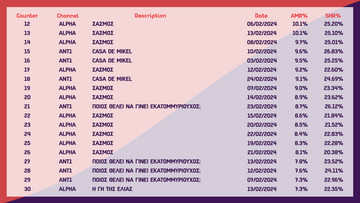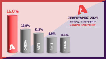 Στις επίσημες μετρήσεις τηλεθέασης ο Alpha, είναι στην κορυφή στο γενικό σύνολο με μεγάλη διαφορά. Τόσο, στο σύνολο της ημέρας, όσο και στην prime time ζώνη (ανοίγοντας την ψαλίδα της διαφοράς με τον δεύτερο τηλεοπτικό σταθμό ο Alpha κερδίζει με άνεση την πρωτιά.