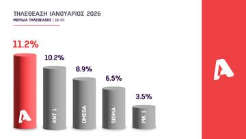 Πρωτιά και στα νεανικά κοινά 18-54 με διψήφια ποσοστά.