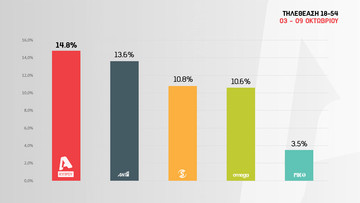Δείτε τον ενδεικτικό πίνακα με τις αναλύσεις για την εβδομάδα 3 Οκτωβρίου – 9 Οκτωβρίου σε γενικό σύνολο, δυναμικό κοινό αλλά και γυναικείο, εμ τον Alpha να ανοίγει την ψαλίδα.