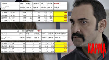 Συγκεκριμένα, χθες το βράδυ, η σειρά “Κάρμα” κατέγραψε μέχρι και 20,0% σε Σύνολο Πληθυσμού, ενώ στα Δυναμικά Κοινά σκαρφάλωσε μέχρι το 23,9%, αποδεικνύοντας για μια φορά το “πιστό” κοινό του.