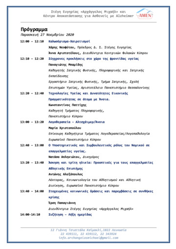 Η Εκδήλωση θα πραγματοποιηθεί την Παρασκευή 27 Νοεμβρίου 2020 και ώρα 12.00-14.10 και θα μεταδοθεί διαδικτυακά μέσω της πλατφόρμας zoom επιλέγοντας το σύνδεσμο: https://us02web.zoom.us/j/7837072419… ή του Facebook Live Streaming της σελίδας μας