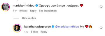 Ωστόσο, αυτό που σχολιάστηκε ιδιαίτερα από τους διαδικτυακούς της φίλους ήταν το τρυφερό σχόλιό της σε ανάρτηση του συντρόφου της, στο οποίο έγραψε: «Όμορφε μου άντρα, υπέροχε», με τον Γιώργο να της απαντά με ένα emoji καρδιάς.