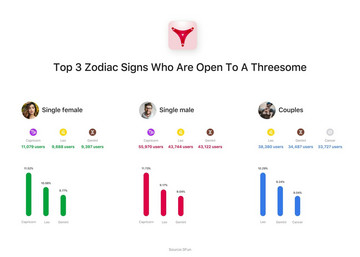 Τα χαρακτηριστικά των ζωδίων είναι πολύ συγκεκριμένα ακόμη και όσοι δεν πιστεύουν στα ζώδια συνήθως το παραδέχονται. Μία νέα έρευνα από την εφαρμογή γνωριμιών 3Fun ουσιαστικά επιβεβαιώνει πως κάποιοι εκπρόσωποι του ζωδιακού κύκλου προτιμούν μία πιο «πιπεράτη» ζωή, έχοντας σεξουαλική επαφή με παραπάνω από ένα άτομο στο κρεβάτι τους.